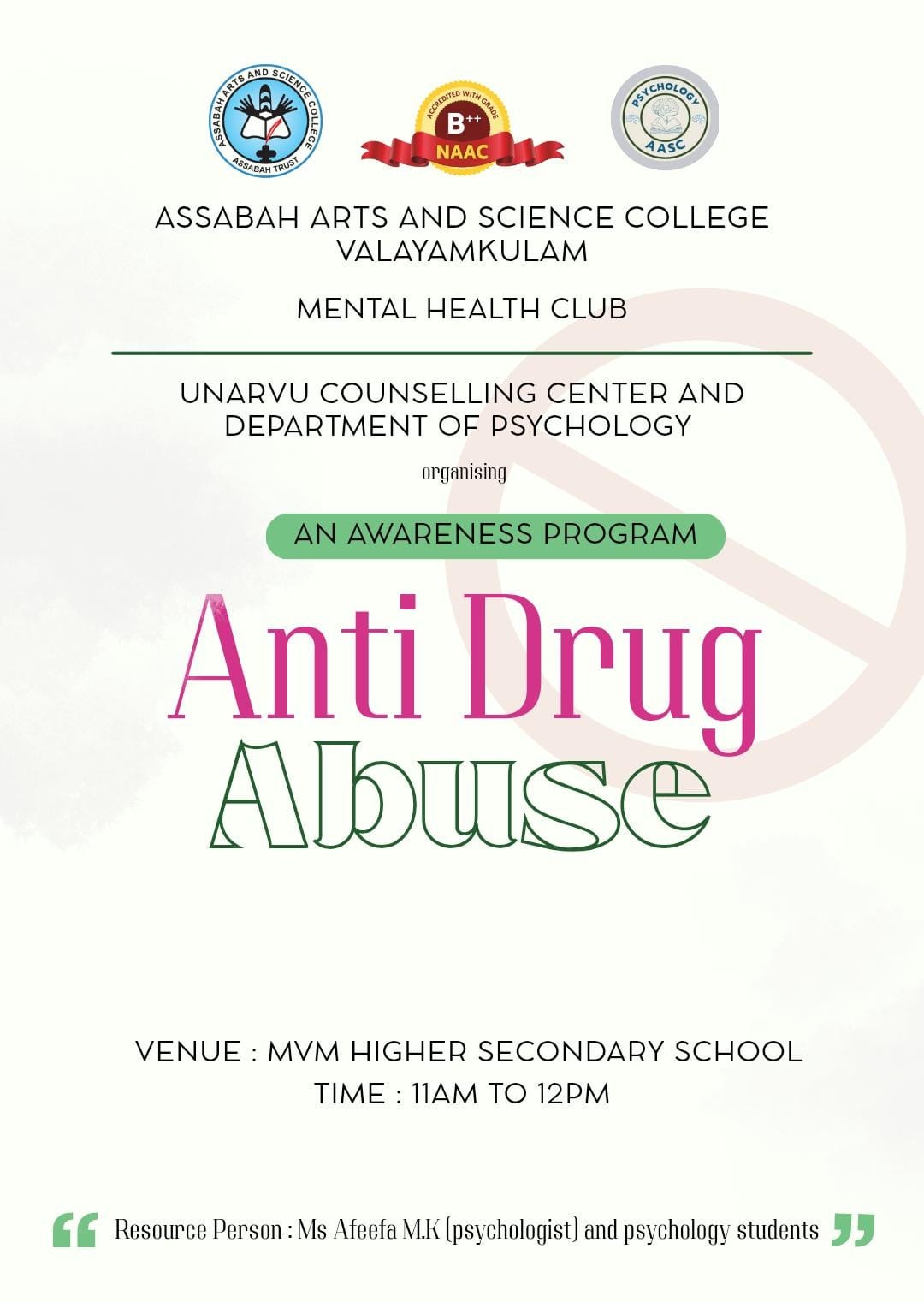 AWARNESS PROGRAMME ON ANTI DRUG ABUSE DAY
