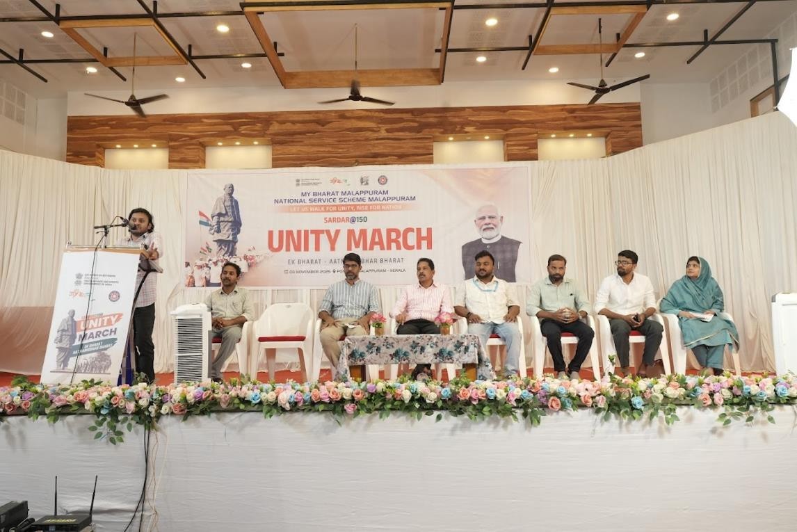 On November 3, 2025, the "Sardar@150 Unity March" was organized in Ponnani under the spirited theme "Ek Bharat Aatmanirbhar Bharat." Conducted by the Ministry of Youth Affairs and Sports in collaboration with MY Bharat and the National Service Scheme (NSS), the event served as a tribute to the 150th birth anniversary of Sardar Vallabhbhai Patel. The proceedings began at 9:00 AM with the Unity March, which was officially flagged off by Shri. Sivadas Attupuram, the Honorable Chairperson of Ponnani Municipality, symbolizing the collective strength and resilience of the nation.