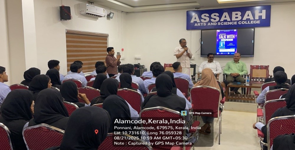 On the occasion of World Entrepreneurs Day, Assabah Arts and Science College, Valayamkulam, organized an inspiring session titled “Talk with Entrepreneur” on 21st August 2025 at 10.00 AM in the Conference Hall. The program was jointly organized by the ED Club, Commerce Club, IIC, and the PG Department of Commerce and Department of Management, under the monitoring of IQAC.