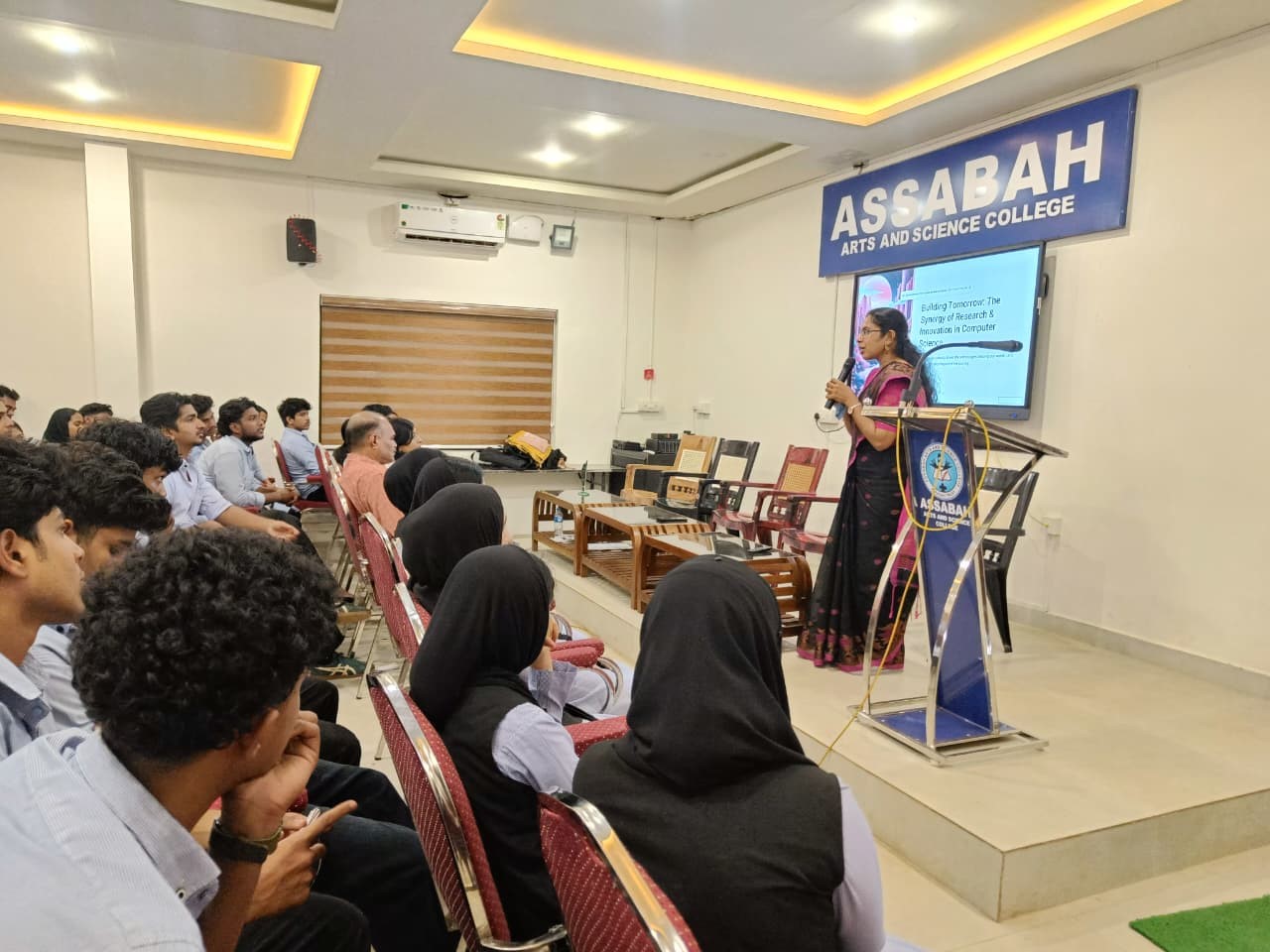 The Department of Computer Applications of Assabah Arts and Science College, in collaboration with the Institutions Innovation Council (IIC), organized a talk titled “Building Tomorrow: The Synergy of Research and Innovation.” The event commenced with a welcoming address that set the tone for the college's strive to attain research and innovation responsibility. The Principal, Prof. M.N. Mohammed Koya, highlighted the importance of integrating research and innovation to inspire students to explore the transformative potential of research and innovation in shaping future technological advancements. The event was part of the institution’s ongoing efforts to nurture a research mindset among students and enhance their exposure to evolving academic and industry trends.